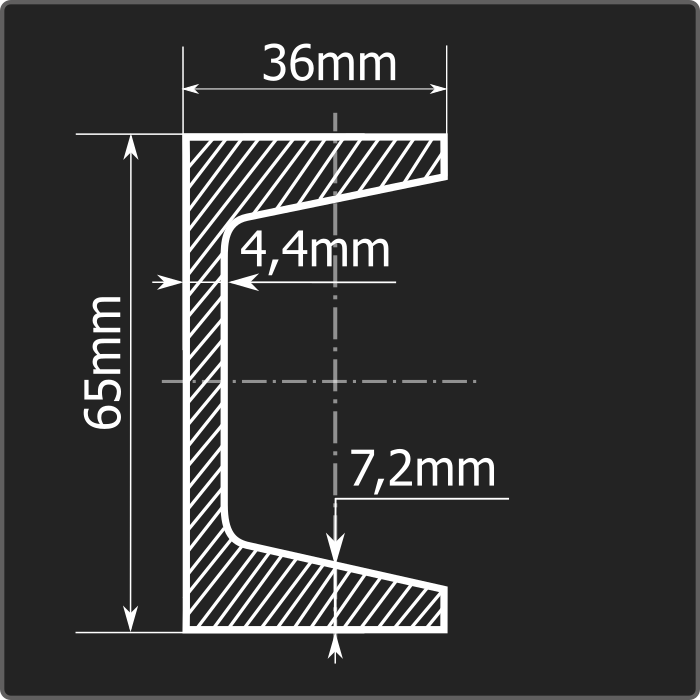 Швеллер стальной горячекатаный с уклоном внутренних граней полок 6,5У и длиной 12м. Материал - углеродистая сталь. Соответствует требованиям ГОСТ 535-2005.