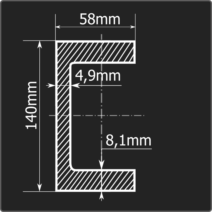 Швеллер стальной горячекатаный с параллельными гранями полок 14П и длиной 12м. Материал - углеродистая сталь. Соответствует требованиям ГОСТ 535-2005.