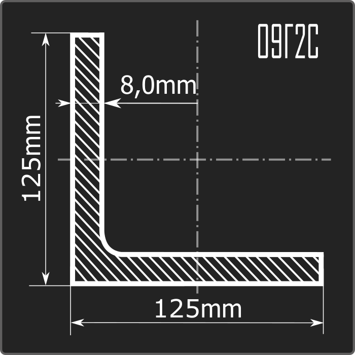 Угол 125*125*8,0 09Г2С 12м ГОСТ 19281-2014/ГОСТ 8509-93