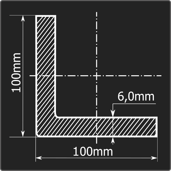 Угол стальной холоднокатаный гнутый равнополочный 100*100мм, толщиной 6,0мм и длиной 12м. Материал - углеродистая сталь. Соответствует требованиям ГОСТ 19771-93.