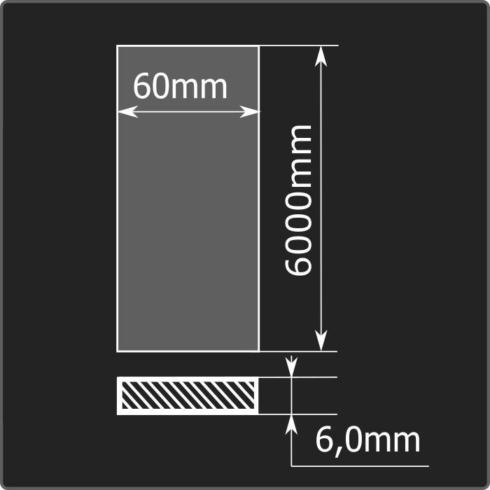 Полоса стальная горячекатаная толщиной 6,0мм, шириной 60мм и длиной 6м. Материал - углеродистая сталь. Соответствует требованиям ГОСТ 103-2006.