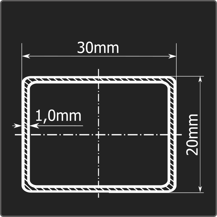 Труба профильная стальная прямоугольного сечения 30*20мм, длиной 6м и толщиной 1,0мм. Материал - углеродистая сталь. Соответствует требованиям ГОСТ 13663-86. Стандартный пакет: вес - 1,332тн., количество - 300шт.